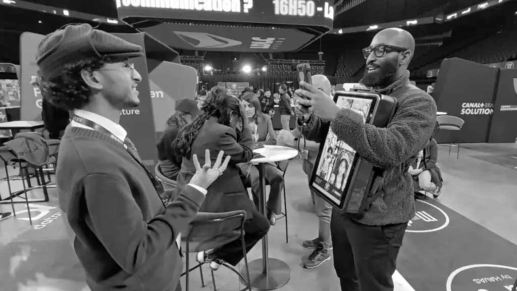 C’est le premier Photobooth IA portable. Pas de borne fixe ici : un Photorunner se déplace au cœur de votre événement avec un dispositif tactile portable. Les visiteurs posent en quelques secondes, choisissent un thème IA directement sur l’appareil et reçoivent une photo générative unique, stylisée et personnalisée. Un photobooth qui va vers les gens, qui les surprend, qui déclenche des sourires et qui capture des instants authentiques.